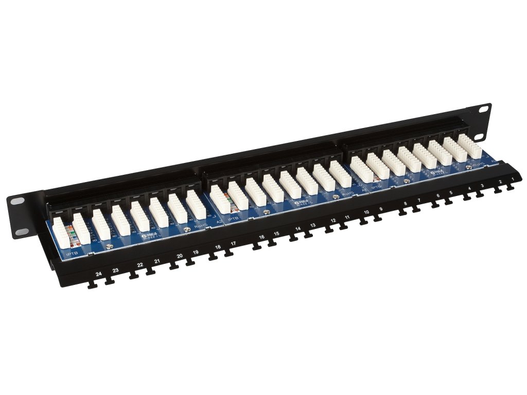 Patch panel Solarix s označením SX24L-5E-UTP-BK je panel osazený 24 porty RJ45, jehož součástí je vyvazovací lišta sloužící k pevnému uchycení a přehlednému uspořádání kabelů. Datový kabel typu drát se zakončuje do duální IDC svorkovnice typu 110/Krone – tj. k zařezání lze použít nástroj typu 110 i Krone. Svorkovnice je z důvodu snadného zakončení kabelu označena podle standardu T568A i T568B, a to za pomoci barev párů a číselného označení jednotlivých vodičů přímo na desce plošných spojů (liché číslo označuje vždy polobarevný vodič a sudé plně barevný). Stejně jako všechny ostatní komponenty strukturované kabeláže Solarix je tento panel vyroben tak, aby zaručoval maximální životnost, velmi dobrou funkčnost a především vysokou spolehlivost. Tento patch panel Solarix splňuje požadavky na komponenty kategorie 5E/Class D definované v mezinárodních normách ANSI/TIA 568, ISO/IEC 11801 a EN 50173, včetně všech nejnovějších dodatků. Barva patch panelu je černá; velikost v datovém rozvaděči je 1U.