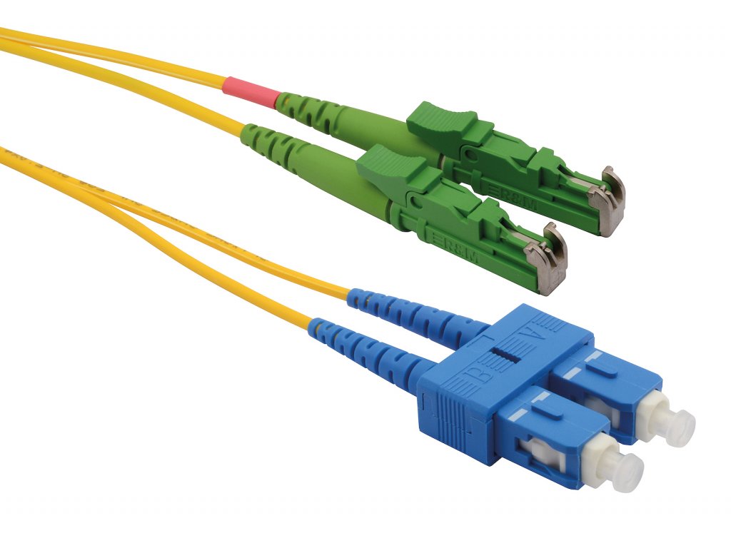 Patchcord optický E2000 SM OS2 9/125, LSH/APC-SC/PC, 2m, LSOH žlutý duplex