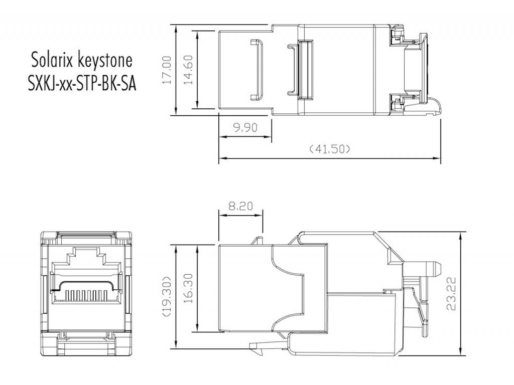 Samořezné keystony Solarix se vyznačují velmi jednoduchou instalací, ke které není nutné použít zařezávací nástroj. Tyto keystony bez problémů splňují parametry specifikované v mezinárodních standardech strukturované kabeláže ANSI/TIA 568, ISO/IEC 11801 a EN 50173 pro kategorii 6 a třídu vedení Class E, včetně všech nejnovějších dodatků. Keystony jsou osazeny 180° samořeznou svorkovnicí, která je označena barevným schématem podle typu zapojení, a to buď podle standardu T568A, nebo T568B. Do této svorkovnice je možné zařezat kabely typu drát s vodiči o velikosti AWG 26 – 22. Standardní barva nestíněných samořezných keystonů Solarix je černá, u stíněné verze je tělo modulu opatřeno stříbrnou kovovou částí. Díky svým kompaktním rozměrům jsou tyto samořezné keystony kompatibilní s modulárními zásuvkami většiny výrobců (např. ABB, Schneider, Legrand, Moeller, Hager, Obzor atd.). Tuto kompatibilitu si můžete ověřit v tabulce kompatibility, která se nachází v souborech ke stažení.